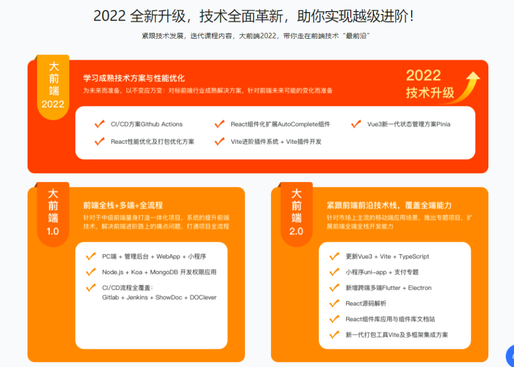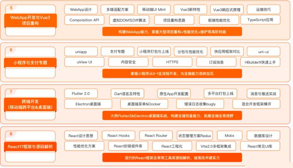 1个业务场景打通全端、全栈、全流程,实现全局思维与综合技术能力全面突破;对标阿里P6,8个月成为前端高级人才