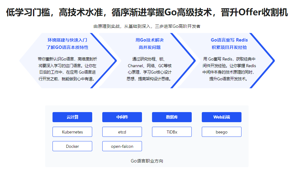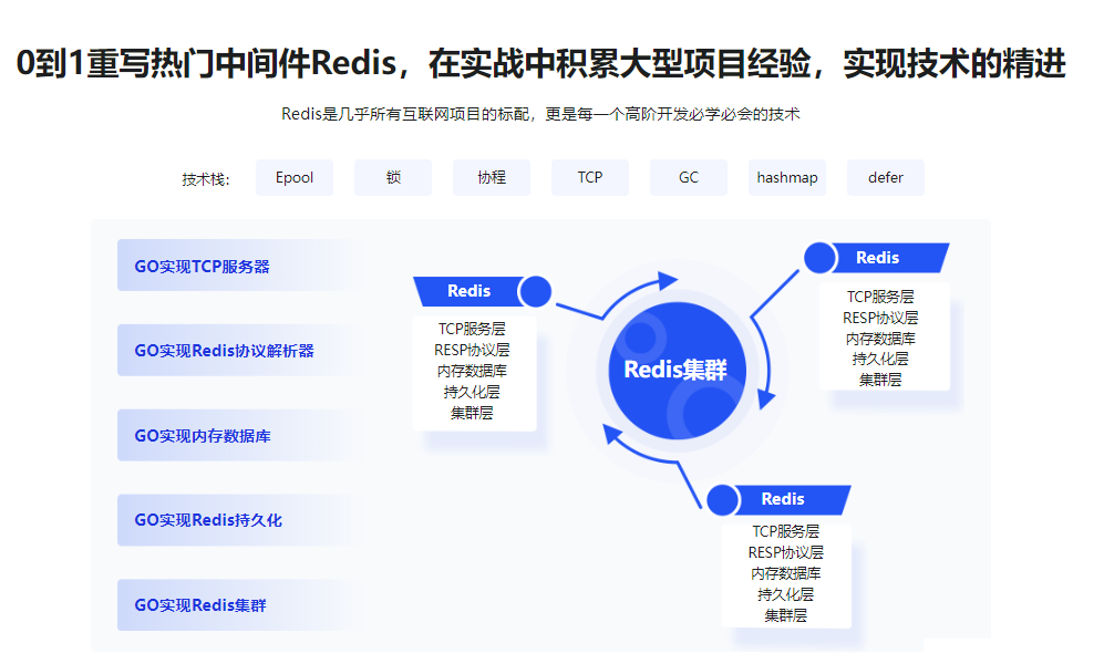 常见的“Go语法+Web小项目”学习模式,早已不能满足企业对Go开发者的技术要求。本课程深入Go语言内核,通过源码解读和原理剖析,帮你构建系统的开发思维;配合Go语言重写Redis项目实战,带你积累大型项目经验,在理解Redis原理的同时,更深入的掌握Go语言高级技术,一箭双雕!