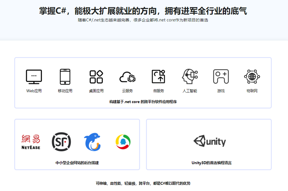 在过去的几年里,随着微软.net平台的开源、以及unity游戏平台的兴起,c#程序开发产生了爆炸式的发展。现在,c#开发相关的生态已经非常完善了,而c#本身也一跃成为市场上最具有竞争力的编程语言之一。课程的第一章,我们简单了解一下课程大纲,初步认识C#和.Net平台,准备好我们的开发环境。…