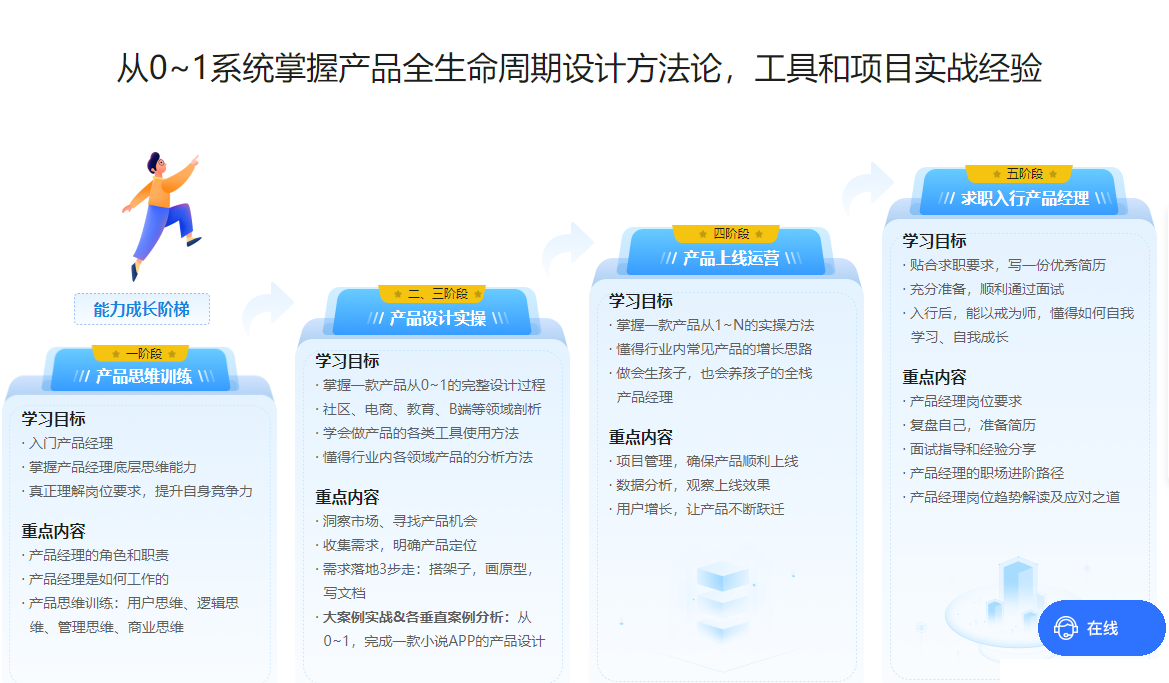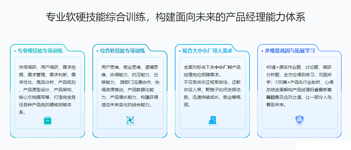 从思维角度提升学员对产品经理岗位能力的认知,帮助学员获得适应未来各种变化的能力