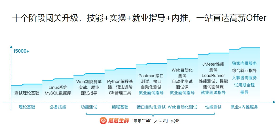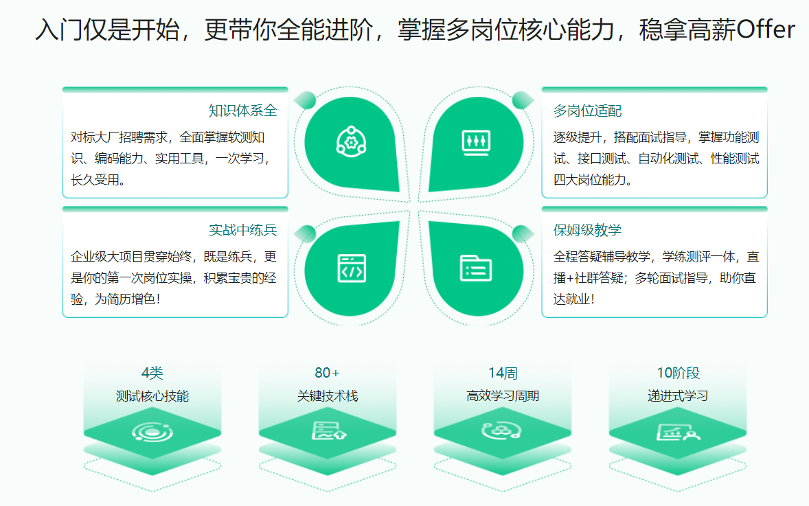遵循大厂用人标准,全面覆盖主流测试技术,三个半月直达就业