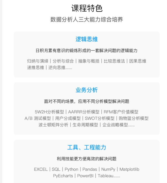 课程采用“编程基础—数据处理—算法推导—项目实战”的四维成长体系,带你彻底打通从Python核心语法、Pandas数据清洗、统计学原理到机器学习算法底层逻辑推导的完整技术闭环。你将不再局限于简单的报表制作,而是深入掌握数据分析师的必备硬技能,通过10周的高强度训练,具备独立承担商业数据分析项目的能力。课程重点结合真实行业案例,涵盖数据获取、清洗、建模、可视化及算法模型推导的全流程实战,助你构建“懂代码、精算法、能实战”的专业数据分析师思维,从容应对互联网大厂对数据驱动型人才的高薪挑战。