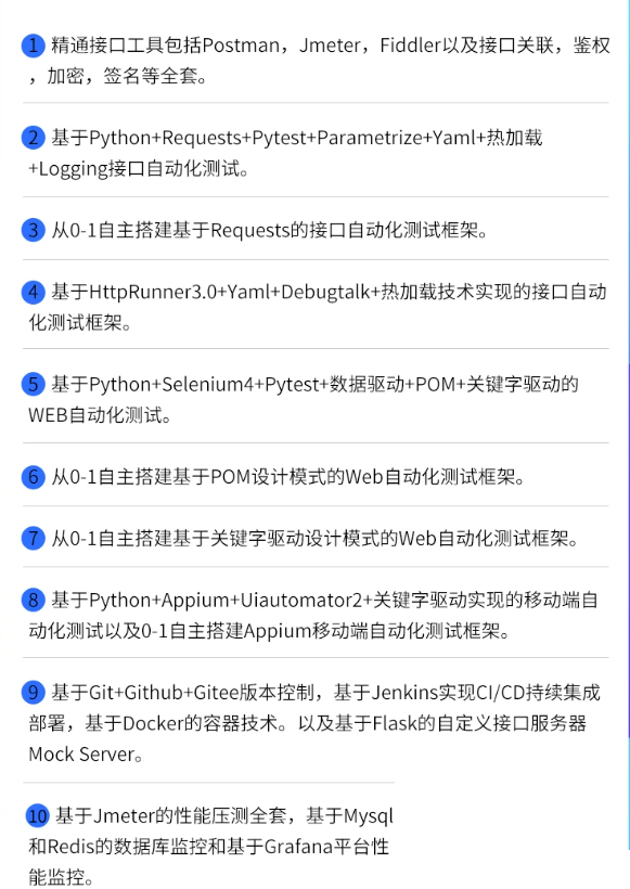 课程对标互联网大厂技术标准,采用“Python后端核心—接口自动化—Web自动化—App自动化—DevOps持续集成”的五维成长体系,带你彻底打通从Python环境搭建、数据类型、函数式编程到面向对象设计(OOP)的核心语法逻辑。你将不再局限于手工点点点测试,而是深入掌握Postman接口测试、HttpRunner框架封装、Selenium元素定位、Appium移动应用自动化及Docker容器化部署等企业级核心硬技能。课程重点结合Pytest、Unittest等主流测试框架,教你如何搭建一套集接口、Web、App于一体的全栈自动化测试平台,并通过Jenkins实现CI/CD持续集成,助你构建“懂开发、精测试、会部署”的高级测试开发工程师思维,从容应对大厂对高薪技术人才的挑战。