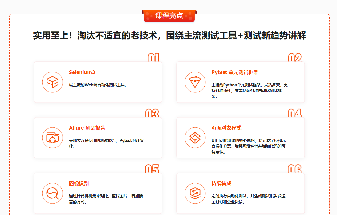 不会自动化的测试是没有未来的!本课程以时下主流的测试框架Selenium3+Pytest+Allure,手把手带你实践自动化测试全流程工作,体验自动化测试的畅快,大大提升个人效率。