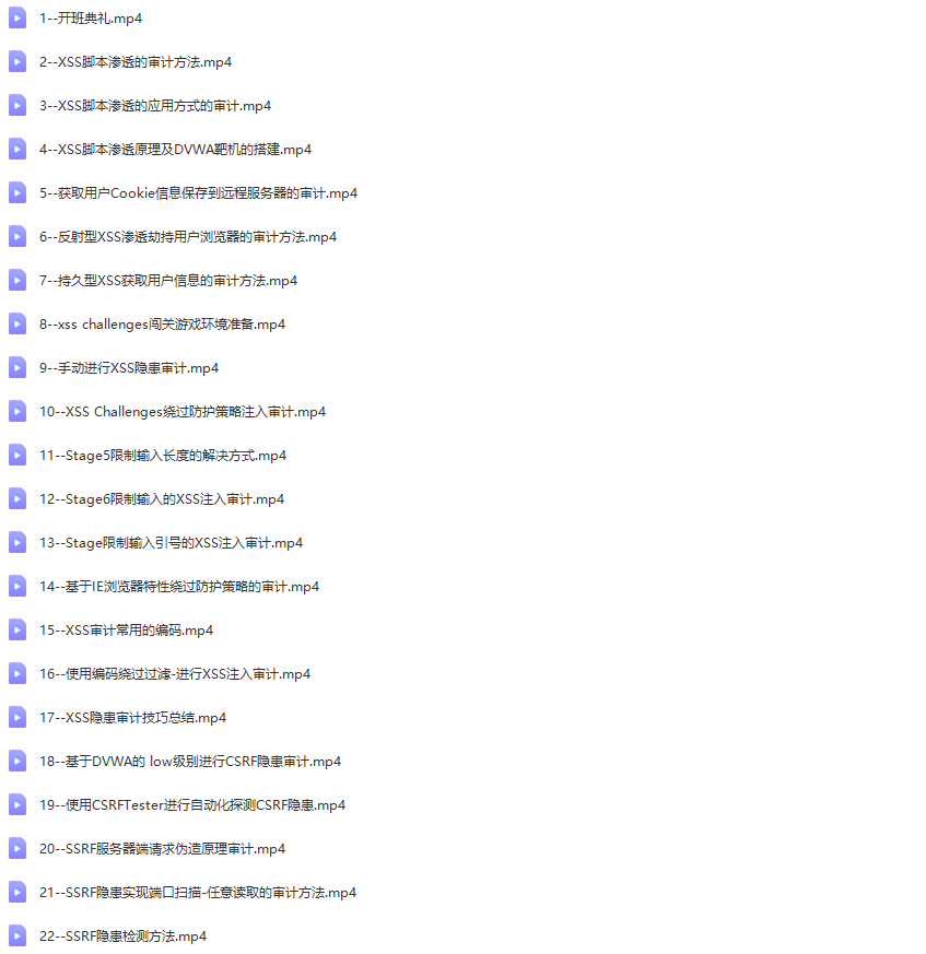 ├──2–XSS脚本渗透的审计方法.mp4 588.05M
