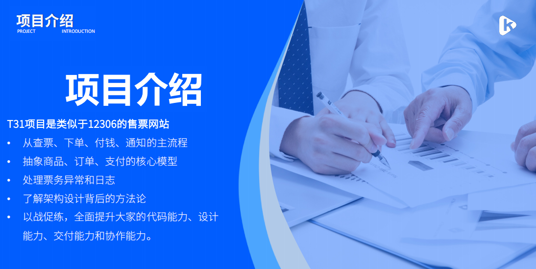 T31训练营是一个为期31天的项目课程,从0到1实现一个购票项目。内容包含需求分析,架构设计,代码实现,代码评审等。