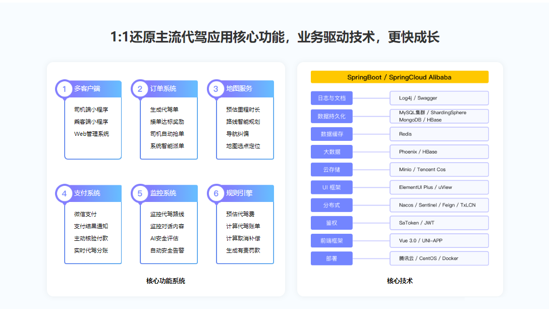 工作1-3年的后端同学,面对晋升或者跳槽时经常被攻击的点是:技能点不熟练,大型项目生疏。很多人有苦说不出,公司平台没有机会,自己能怎么办?别慌!本课程就用一个商业级的多端全栈型代驾项目,带你补齐硬核经验,进军全栈开发,提升个人竞争力。