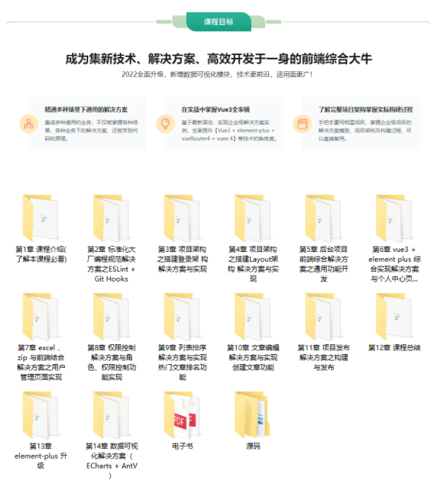 会编码的人有很多,能够提出解决方案的人少,想要高效开发,不仅要会编码,还要懂方案!本课程将基于Vue全新的 <script setup> 语法,手把手带你重写vue-element-admin,不仅能提升你策划方案的能力,更能解决场景众多、功能繁复的后台前端项目中的难题,助力你成为集技术、方案、高效开发于一身的综合性大牛!